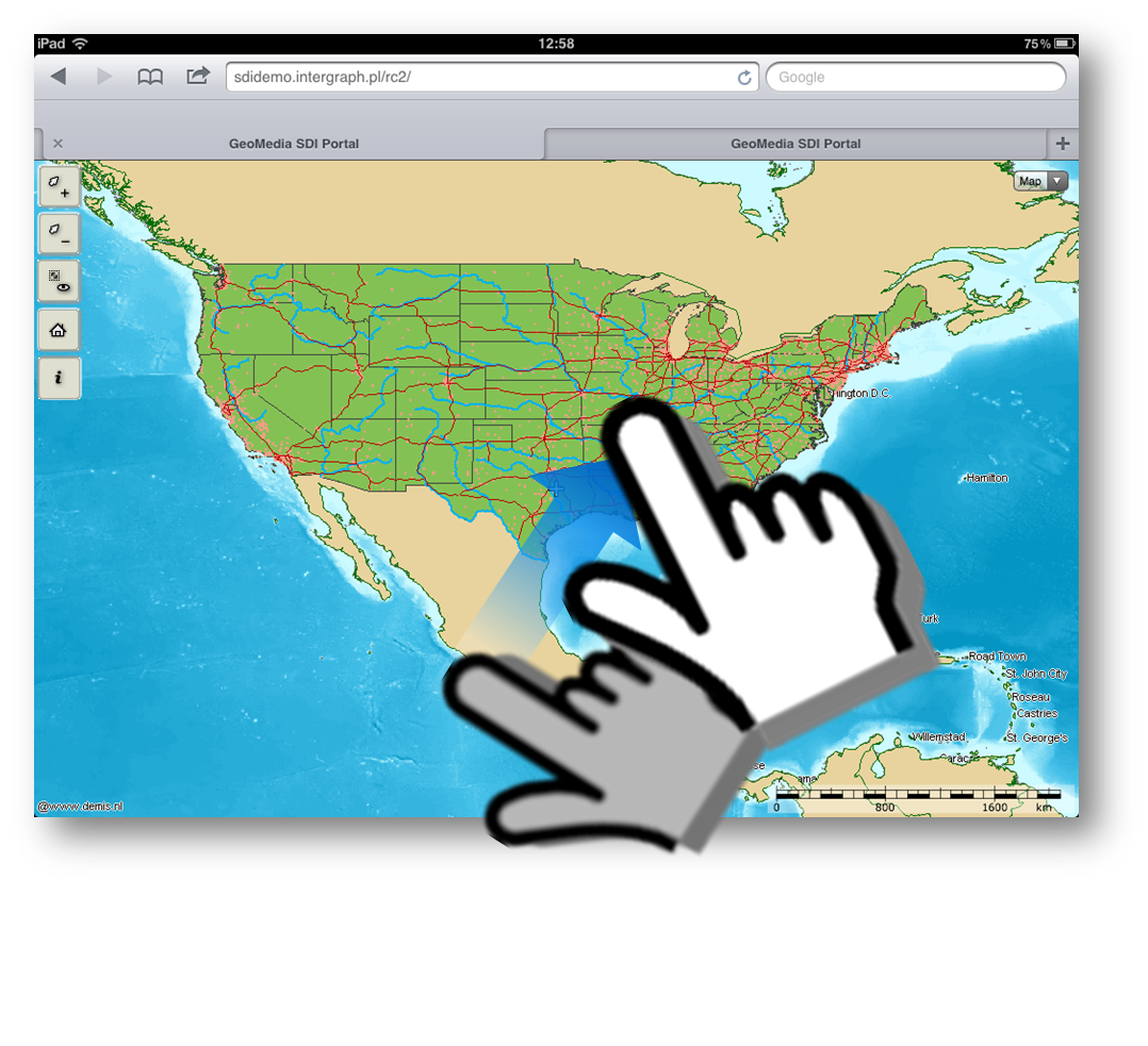 Tap the screen on the map and move your finger to scroll the map.