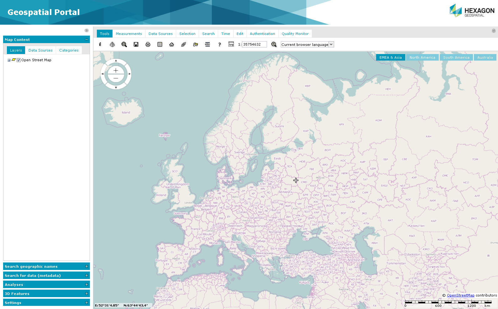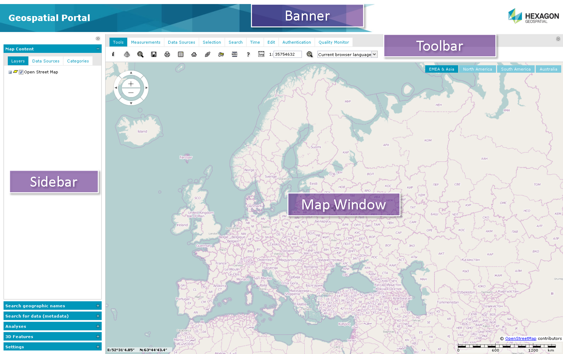 Geospatial Portal in standard layout consists of the following user interface elements: