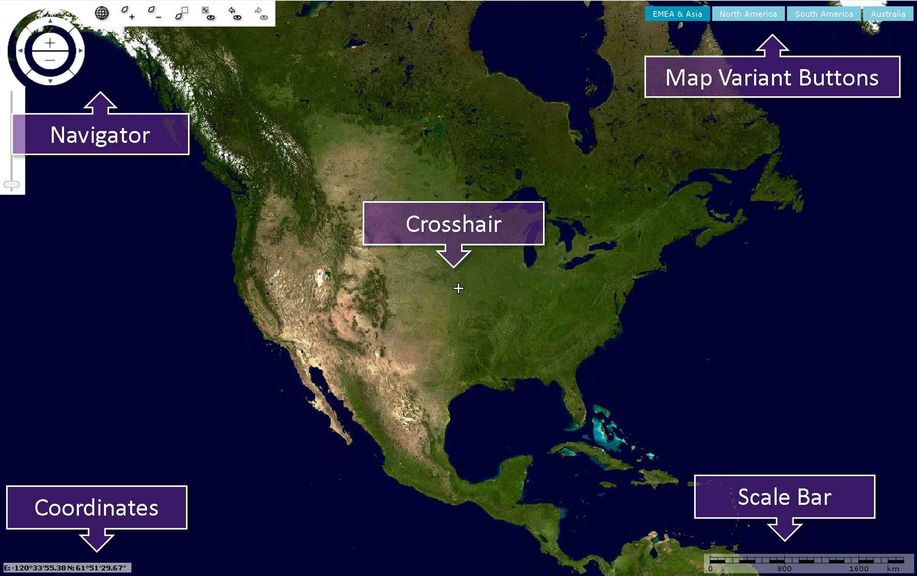 The map window is where all layers with spatial data are displayed. It consists of the following elements: