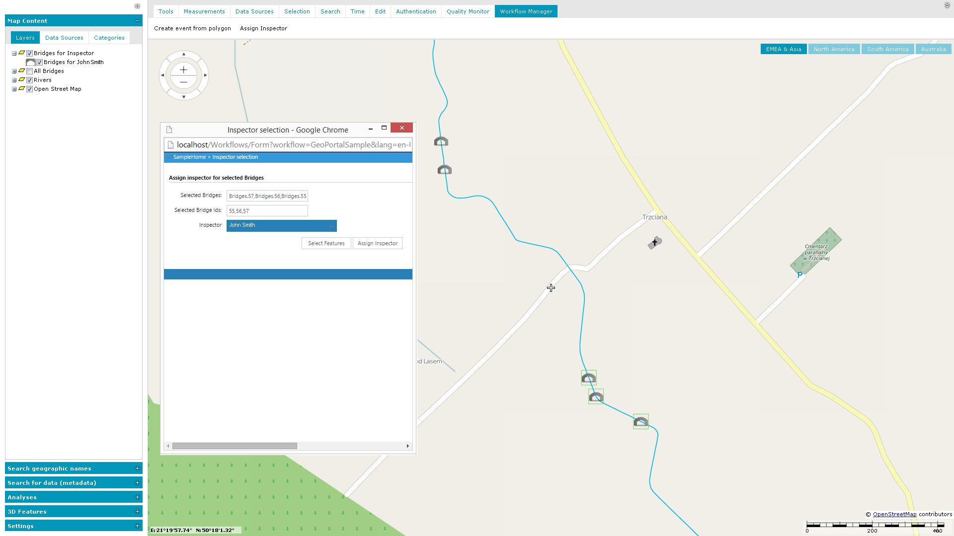 Below is the sample view of GeoMedia Smart Client Workflow being run in Geospatial Portal.